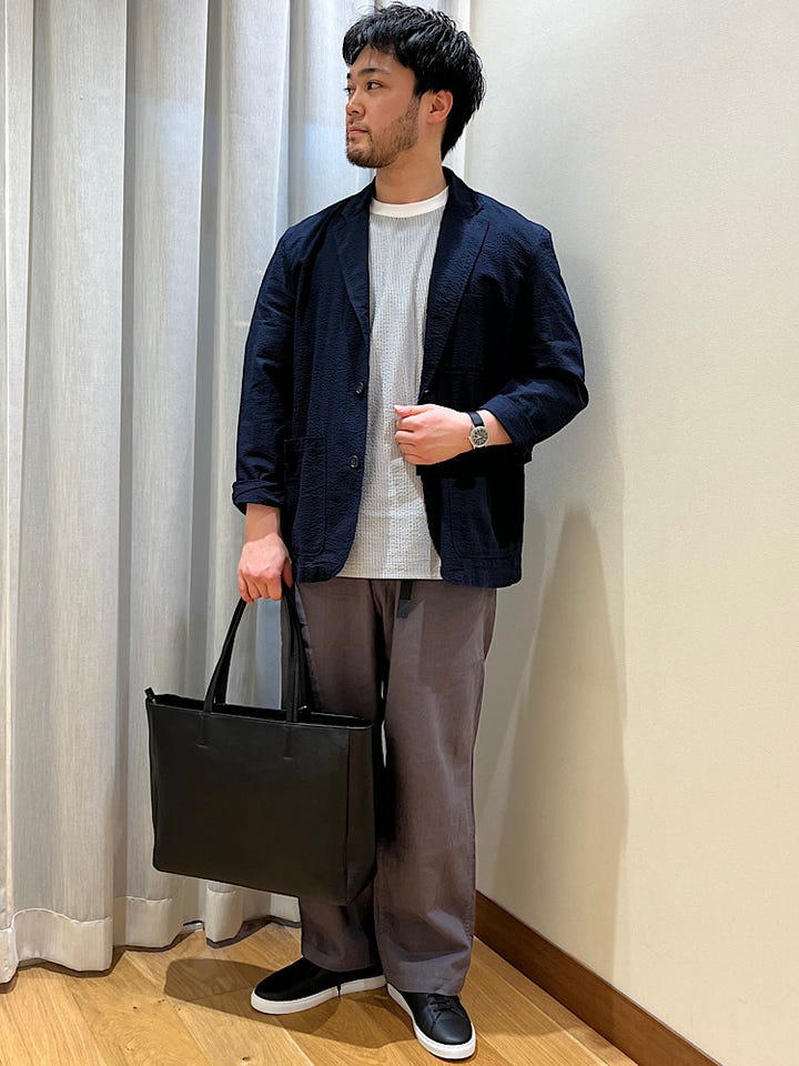 着心地:ゆったりしていてシアサッカー生地なので通気性が非常に良く真夏でも着用していただける商品になってます。