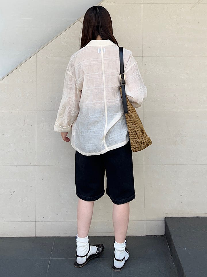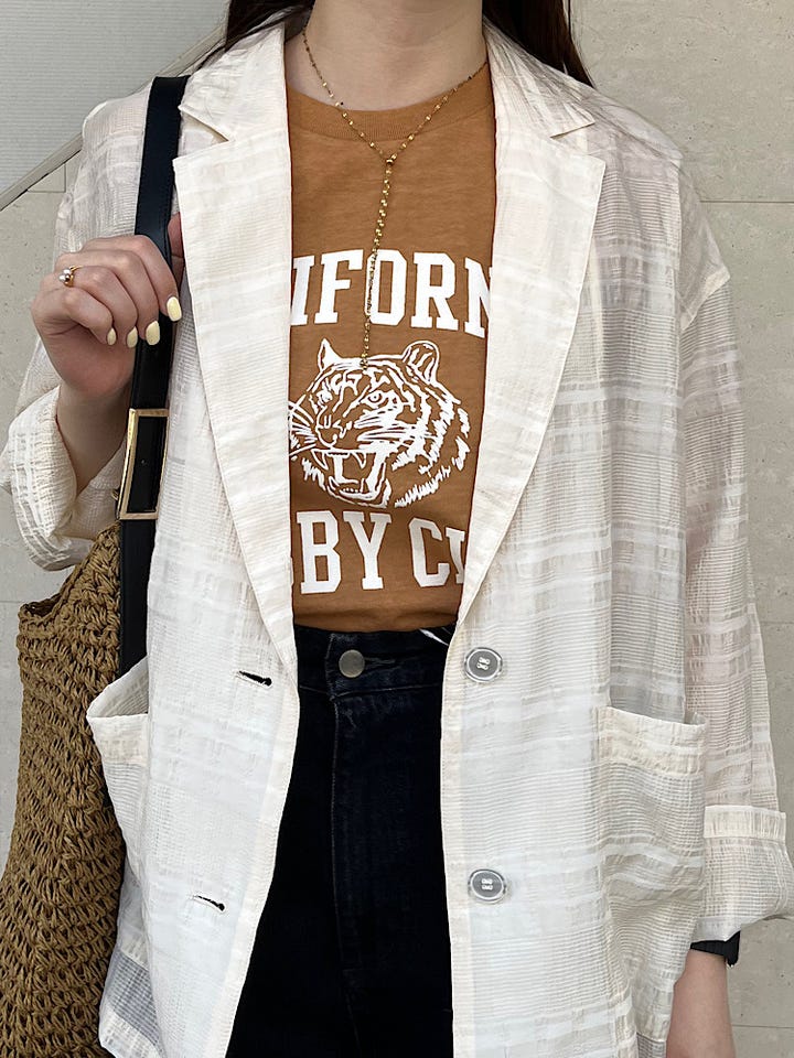 ◆ 商品名: シアー チェック ルーズ テーラード シングル ジャケット