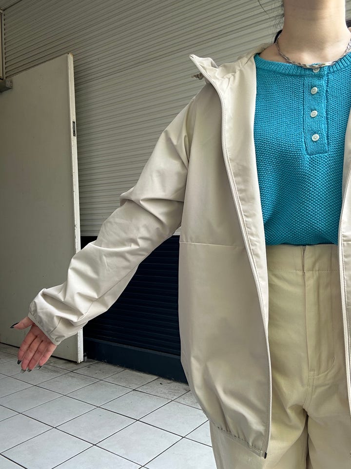 サラッと羽織れるアウターです。薄手で持ち運びやすく、アウトドアなどでも活躍できます!