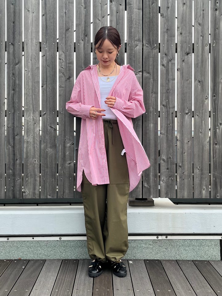 やや大きめで股上が深めなので、脚長効果のある形です。