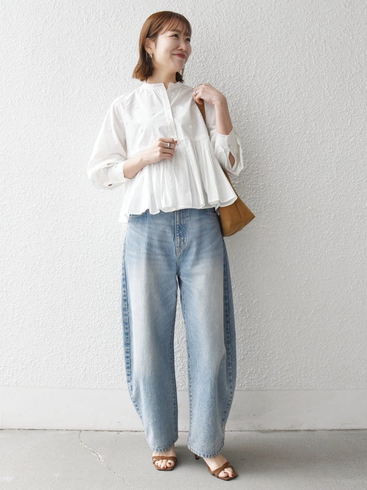 デザイン性のあるブラウスなので、シンプルなアイテムとの合わせがおすすめです。