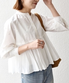 着用アイテム:フラワー モチーフ ペプラム ギャザー シャツ ブラウス ホワイト