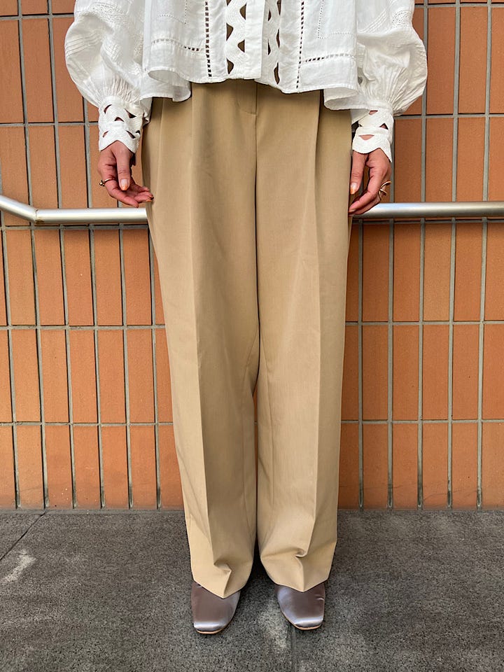 素材感・着心地: 生地が柔らかく、ストンと落ちる形なので、キレイめにもカジュアルにも着ていただけます。夏でも履ける生地感です。