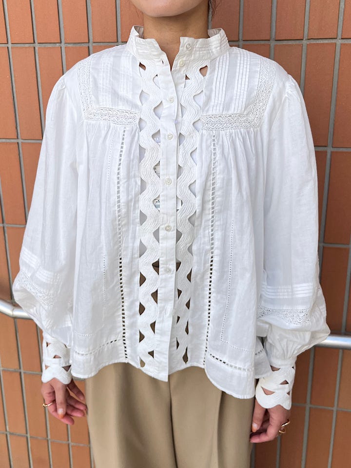 素材感・着心地: 刺繍デザインが可愛い、1枚でサマになるシャツです。羽織として着ていただいても可愛いです。