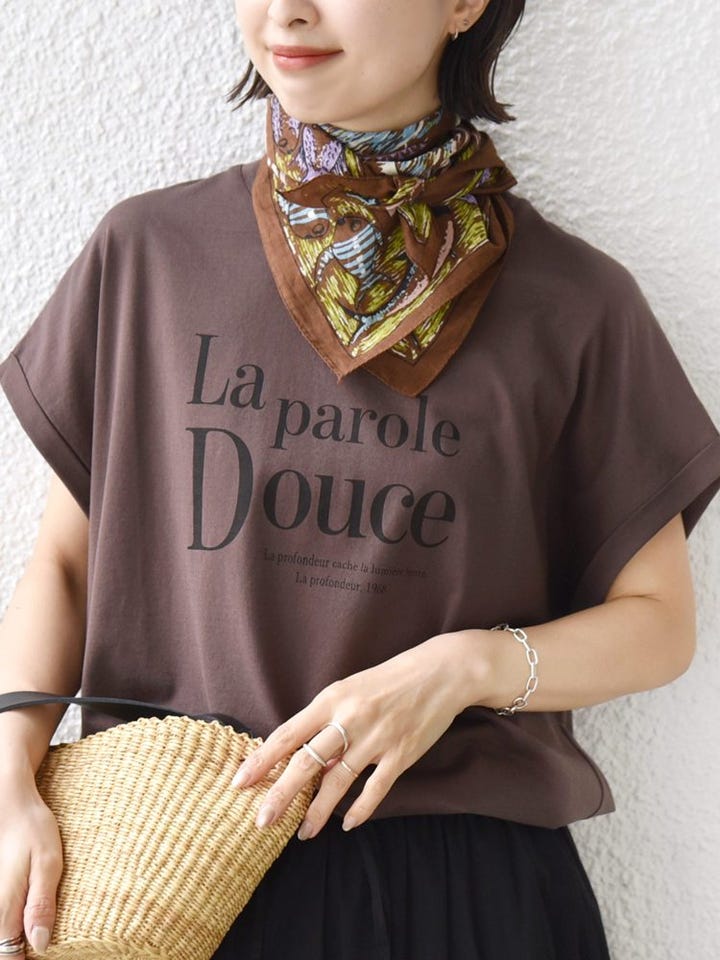 着心地:さらりとしたソフトな肌当たりで、汗ばむ時期でも快適に着れそう。落ち感のあるしなやかな素材なので、ボトムにインしてももたつかず、アウトで着てもバランス良く決まります。