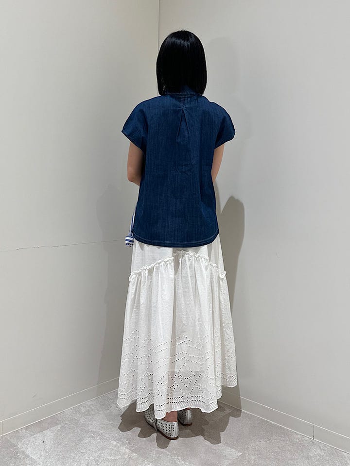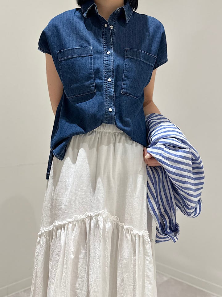 〔ONE SIZE〕SHIPS Colors:〈洗濯機可能〉ファンクション デニム フレンチスリーブ シャツ◇