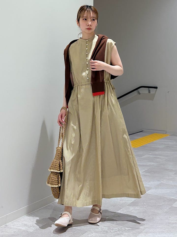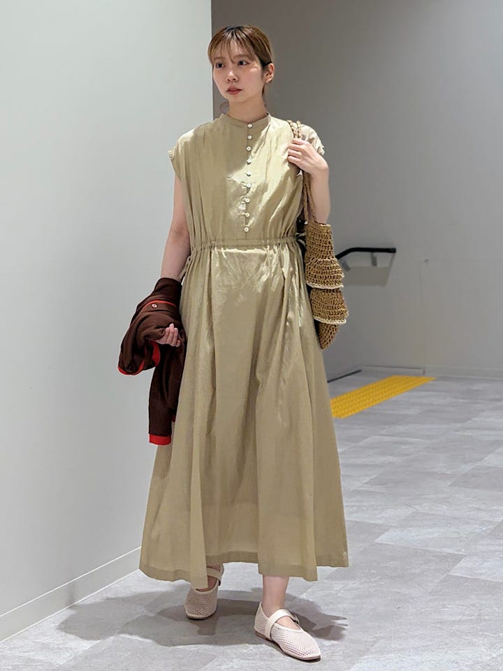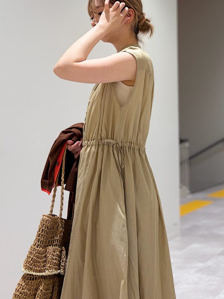 〔ONE SIZE〕《予約》SHIPS Colors:〈手洗い可能〉コットン キュプラ ギャザー ワンピース◆