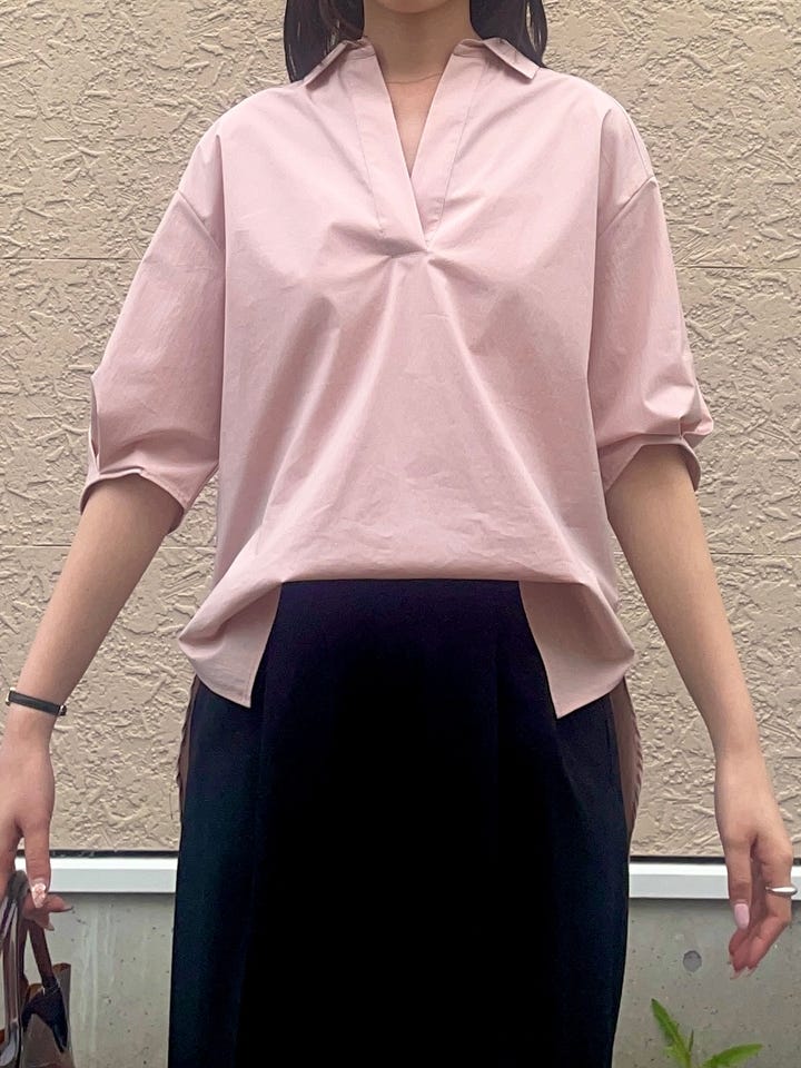 〔ONE SIZE〕SHIPS Colors:〈手洗い可能〉ストレッチ スキッパー シャツ◇