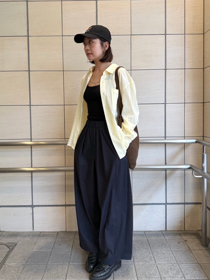 サイズ感・着心地:ウエストゴムでゆとりあり。締め付け感なし。丈感ジャストですが、歩いたり座ったりした時が少しつんつるてんに見えるかな?と思うので(好みですが)、リアルバイするなら38にしようかなと悩みどころです。よく見るとストライプなところが可愛い!ウエストゴムで楽ちんなのに綺麗見えの嬉しいアイテムです。