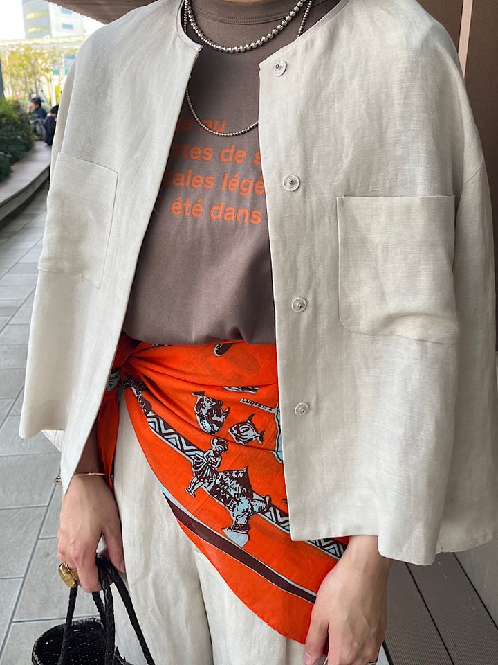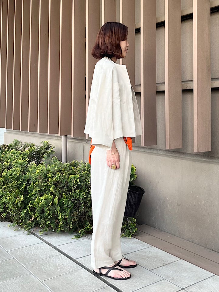 着心地:軽いリネン混の素材で、肌離れもよく着心地が良い