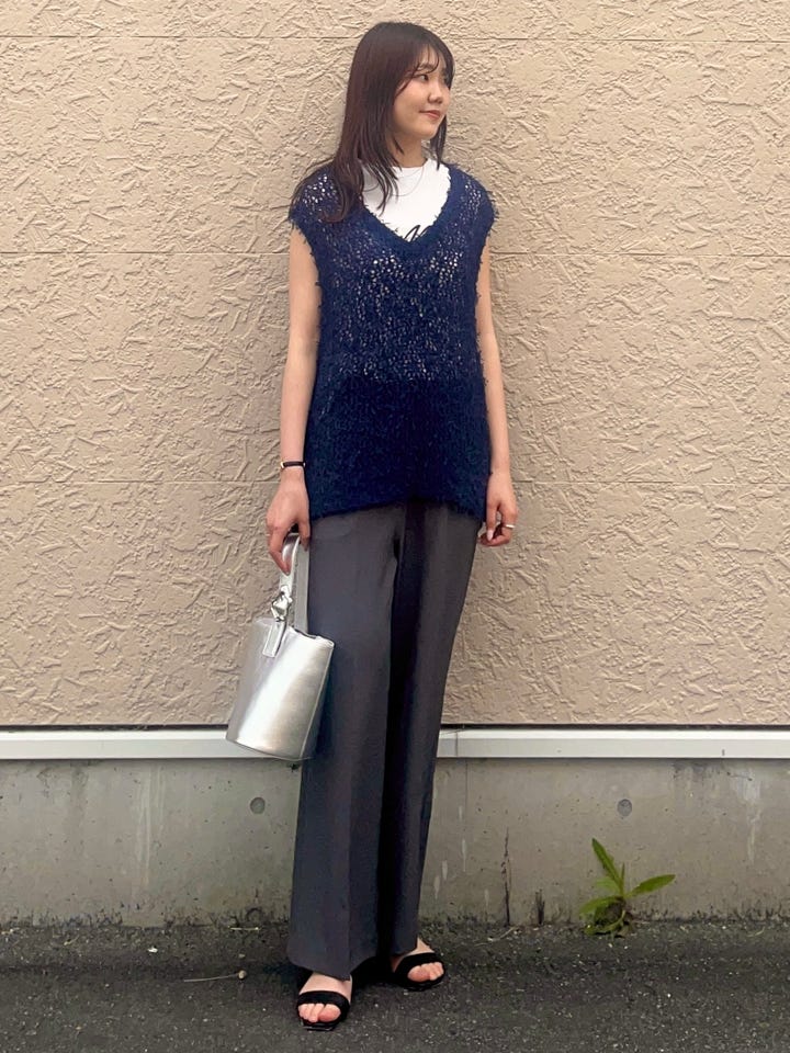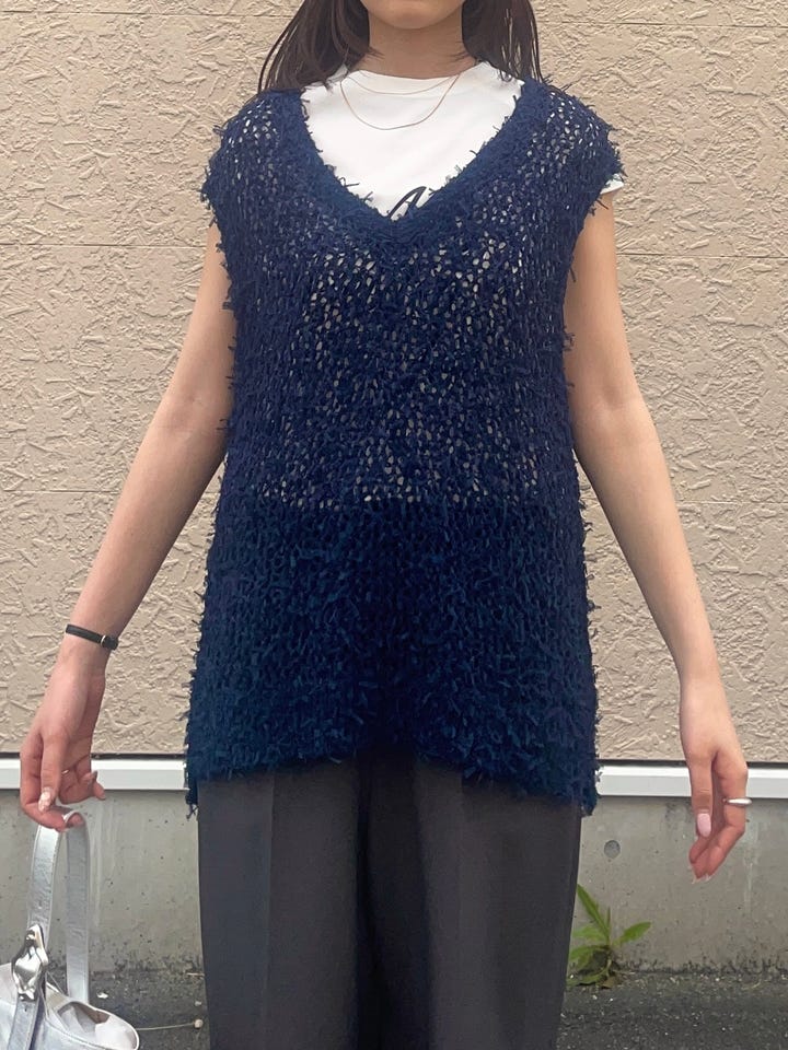 〔ONE SIZE〕SHIPS Colors:〈手洗い可能〉チュールヤーン ミックス Vネック ベスト