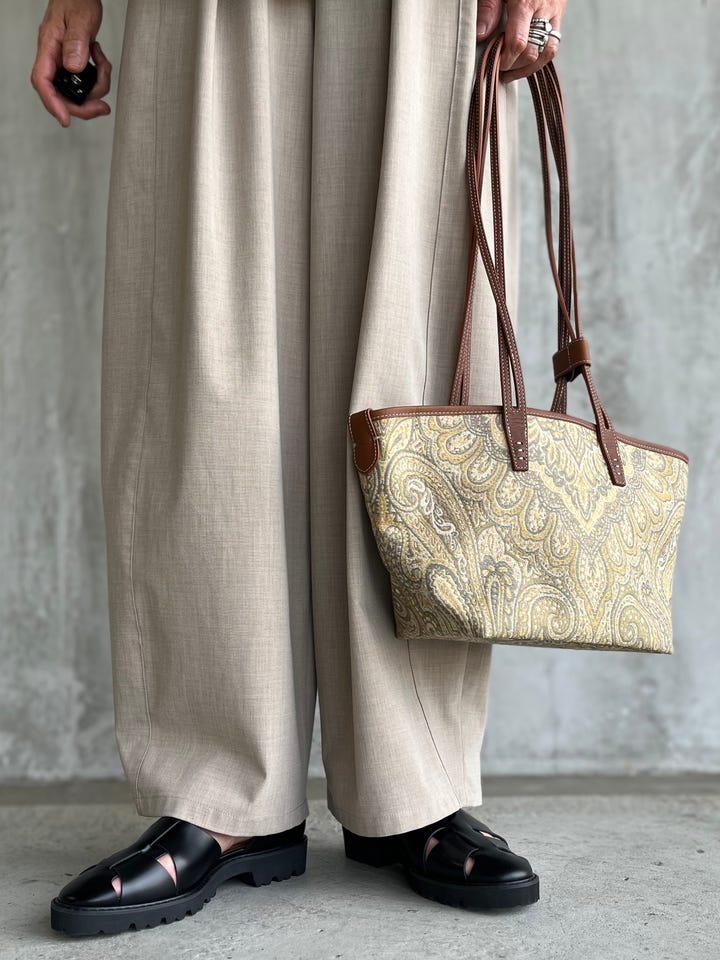 レオパードとイエローペイズリーのジャカード素材を掛け合わせた