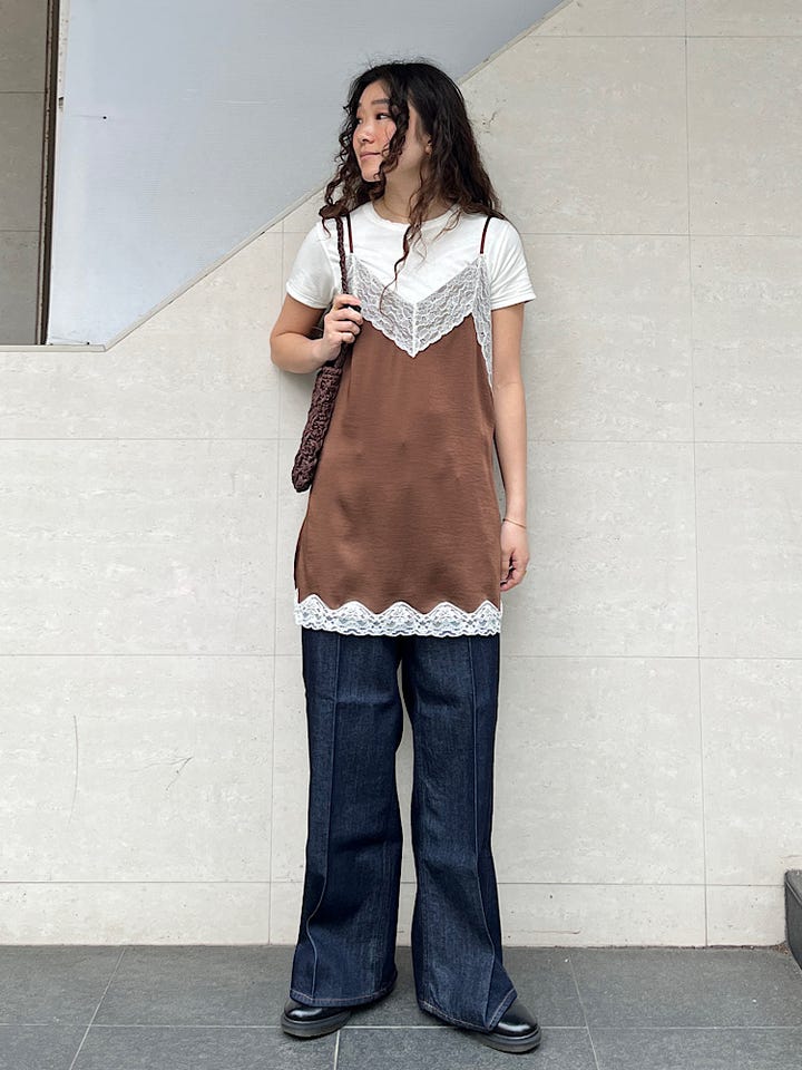 着心地:オチ感のあるつるっとした肌触りで着心地が良い。サイズもゆとりがあるのでレイヤードしやすいです。