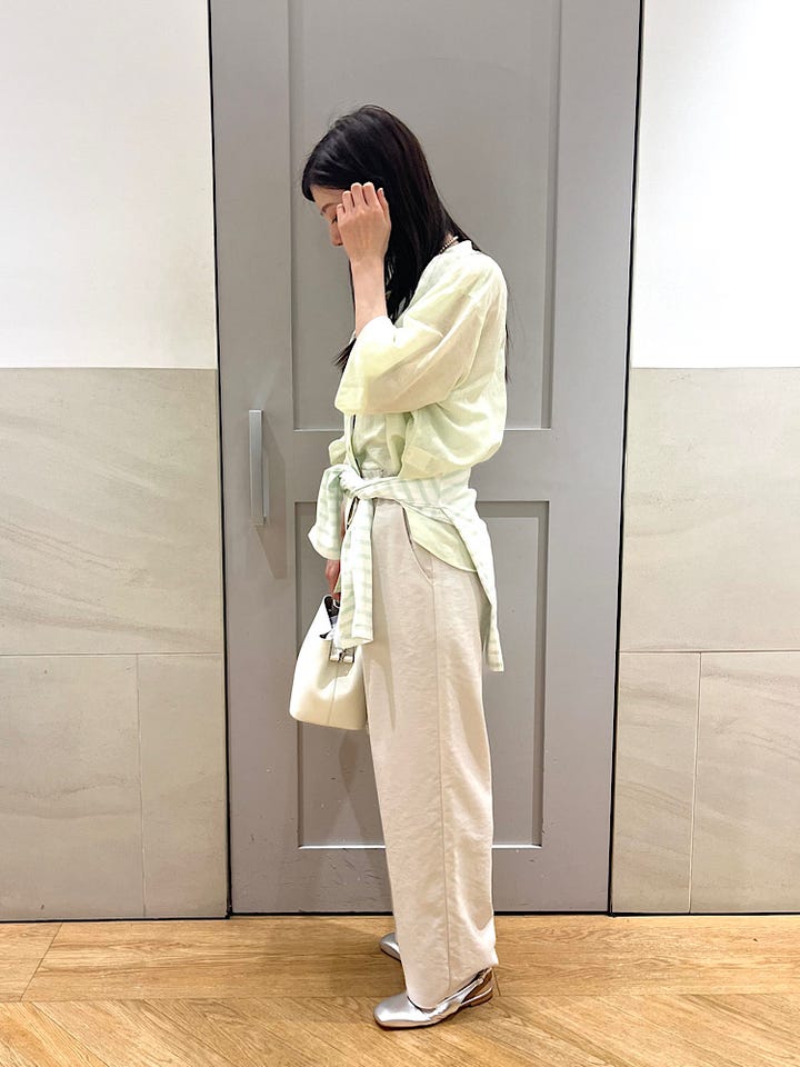 素材感・着心地:リネンが入っているため、清涼感がありこれからの時期にぴったり!袖口にはゴムが入っているため、捲り上げても◎
