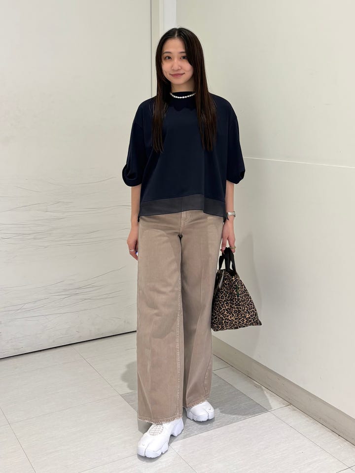 ブラウス見えするデザインできれいめに着れます。カットソー素材で楽ちんです。丈が長すぎず、裾シアーのデザインでタックインが苦手な方におすすめ。袖のツイストデザインで肩のラインをカバーしてくれます。