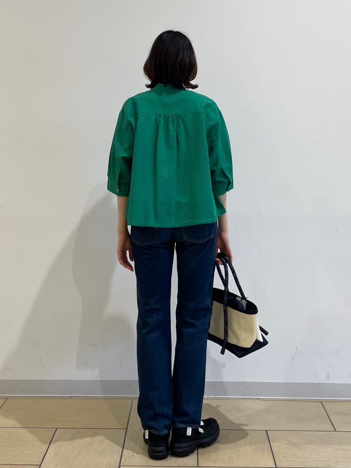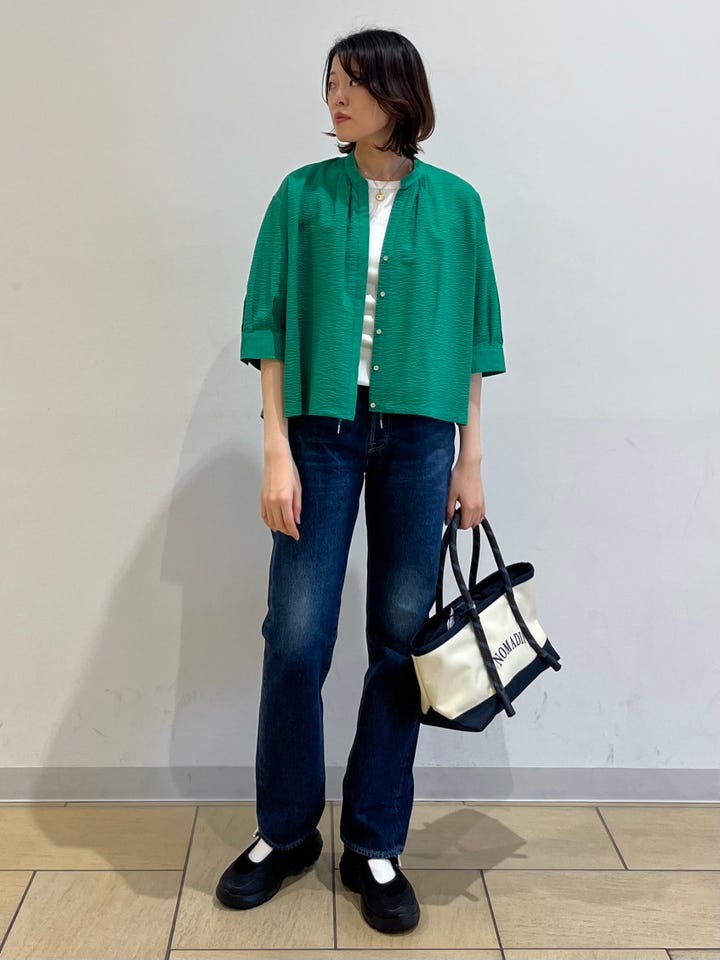 着心地:比較的細身のシルエット。加工感がアクセントになってます。