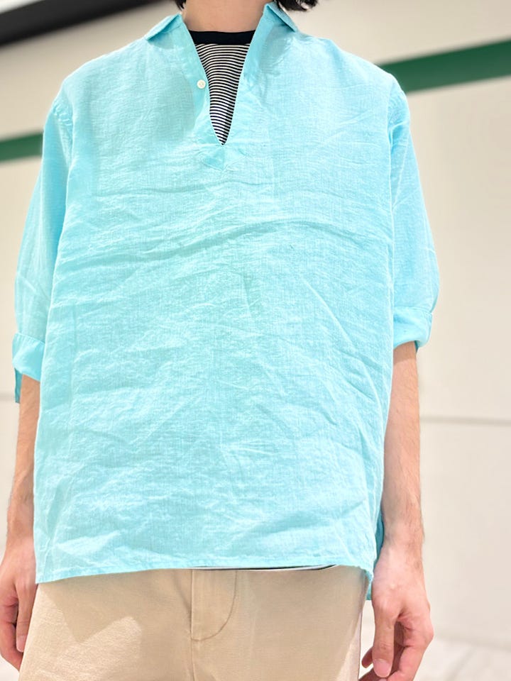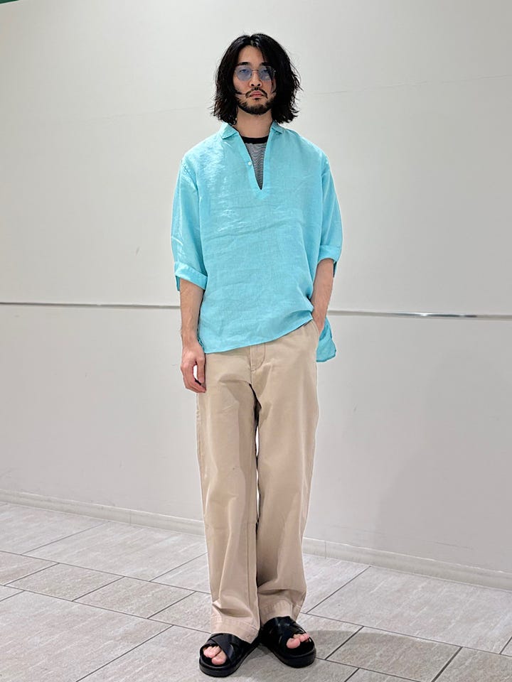 スキッパーなのでインナーで柄や差し色を入れたりできるのでコーディネートの幅が広がります!