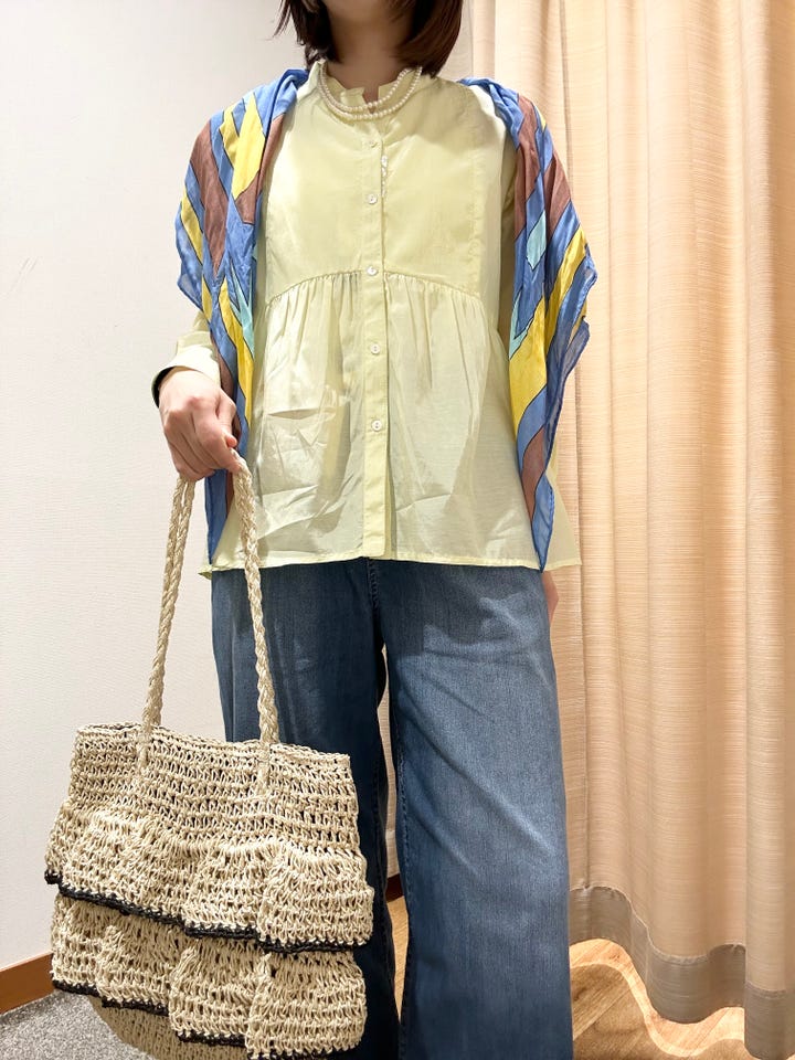 着心地:軽く透けるシアー素材がかわいいです!腰回りふわっと広がるシルエットが体型カバーもしてくれます◎