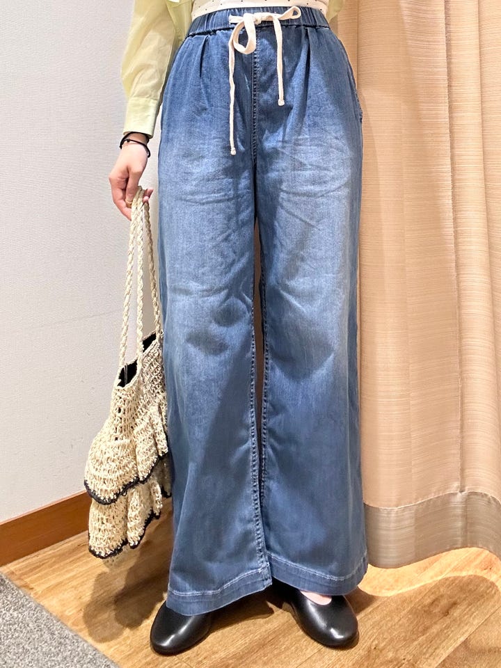 着心地:ウエストゴムでデニムも柔らかいので履きやすいです!履くとひんやりする機能性デニムです。