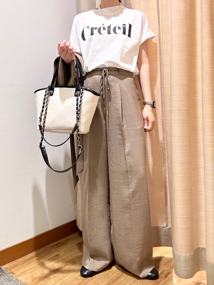 着心地:夏場でもさらっと履いていただける素材感です。腰元から入るタックがスタイルを良く見せてくれます!