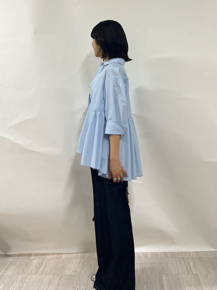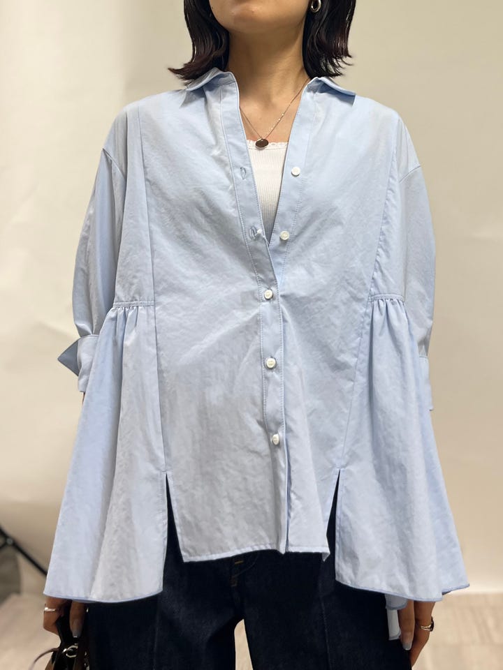 〔ONE SIZE〕〈手洗い可能〉ポリエステル コットン ギャザー 切替 羽織 シャツ