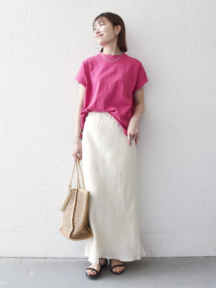 着用アイテム:USAコットン フレンチスリーブ TEE ピンク