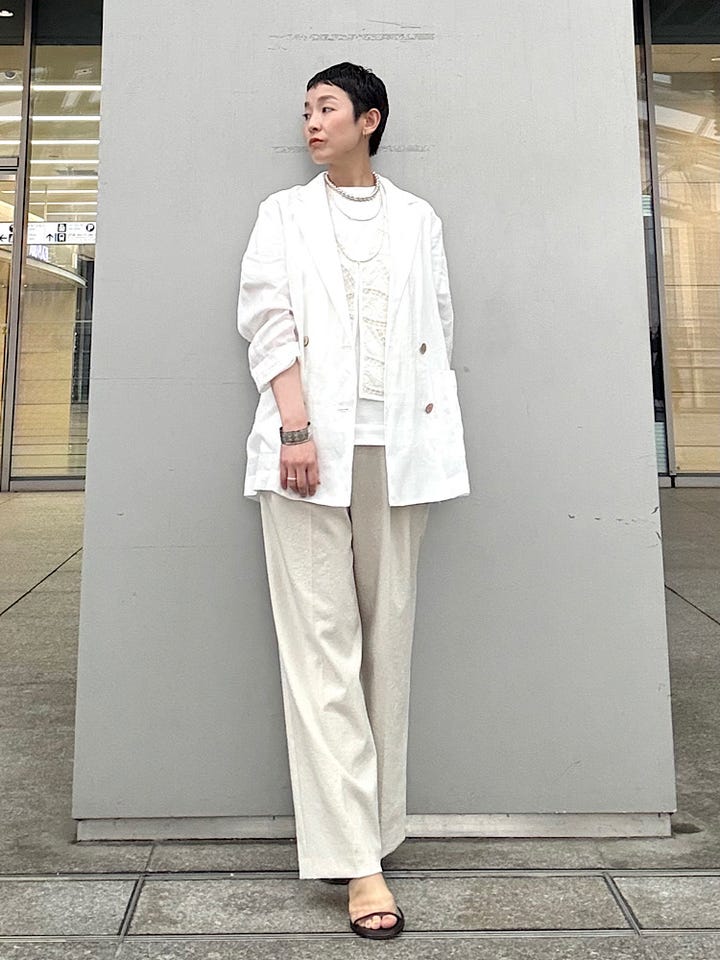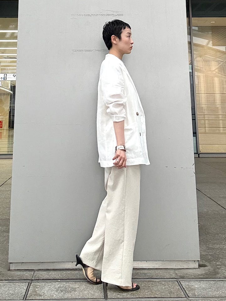 着心地:今年もラミージャケットの季節がやって来ました!薄手で軽く、カーディガンと印象変えて着用を楽しめる1着です。程よい光沢感があるので、ラフになり過ぎず大人カジュアルに合わせて頂けます!