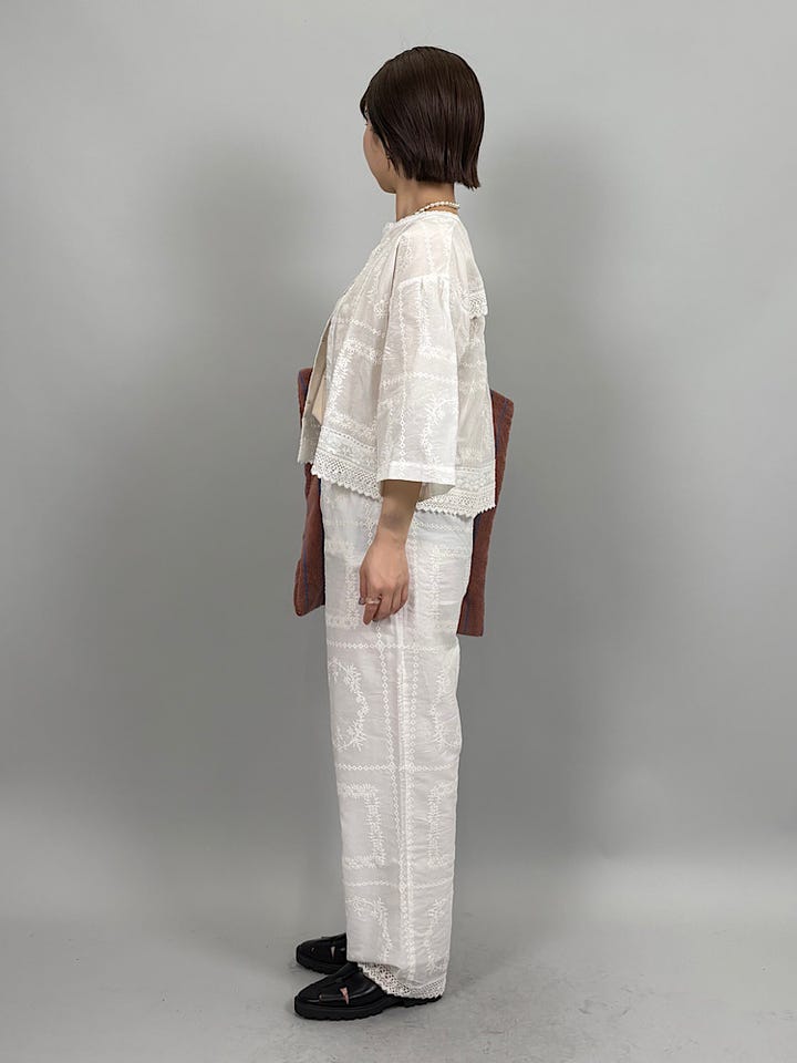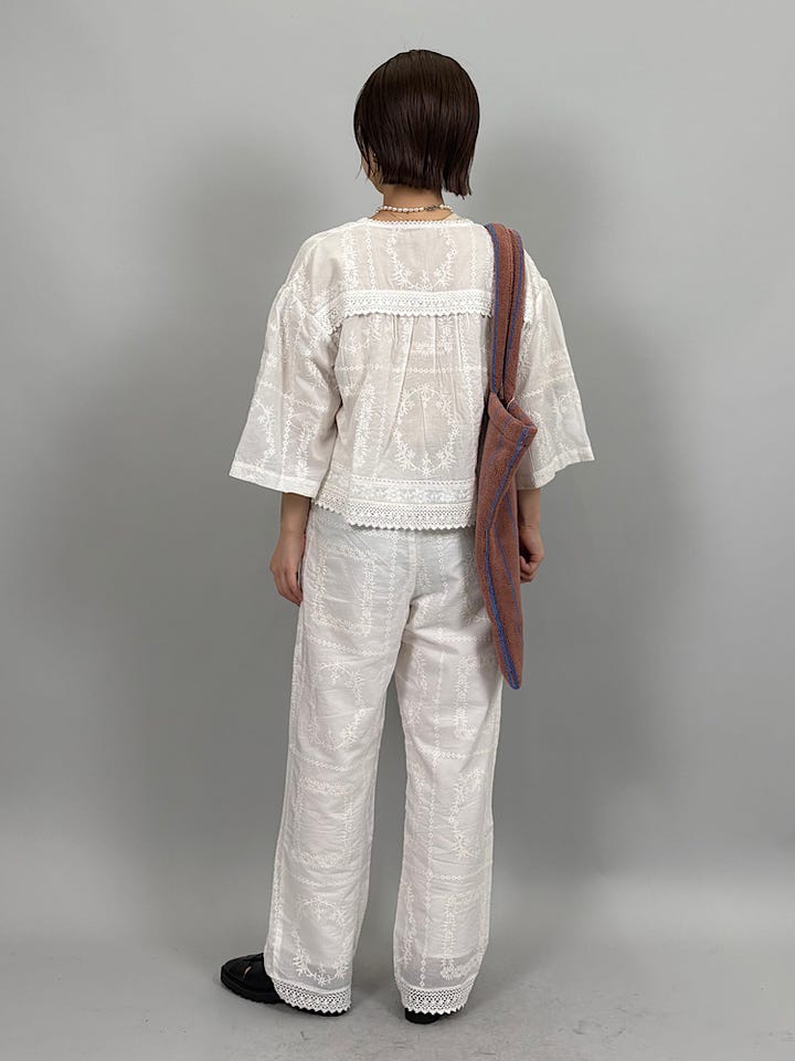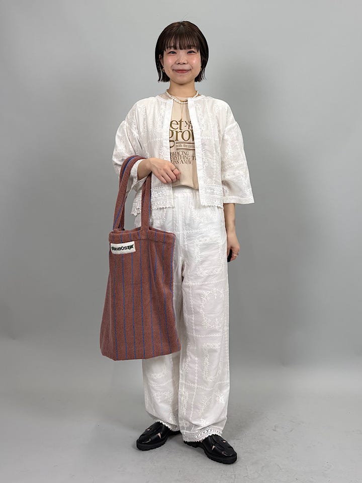 やわらかく軽い綿素材。ソフトな肌触りで、ウエストゴムなので楽な穿き心地です◎裏地もさらっとしているので、涼しく穿いていただけます。