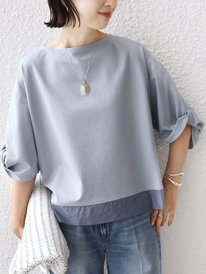 〔ONE SIZE〕〈洗濯機可能〉袖 ツイスト デザイン シアー ドッキング TEE