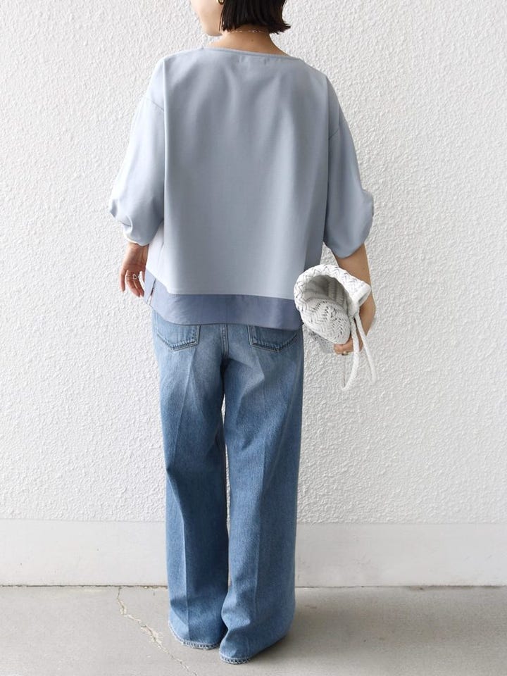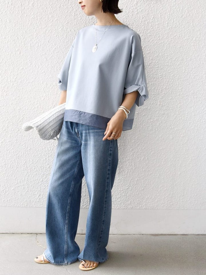 着心地:柔らかいデニムなので、動きやすいです。ヒールやボリュームスニーカーと合わせるとバランスが良さそう◎