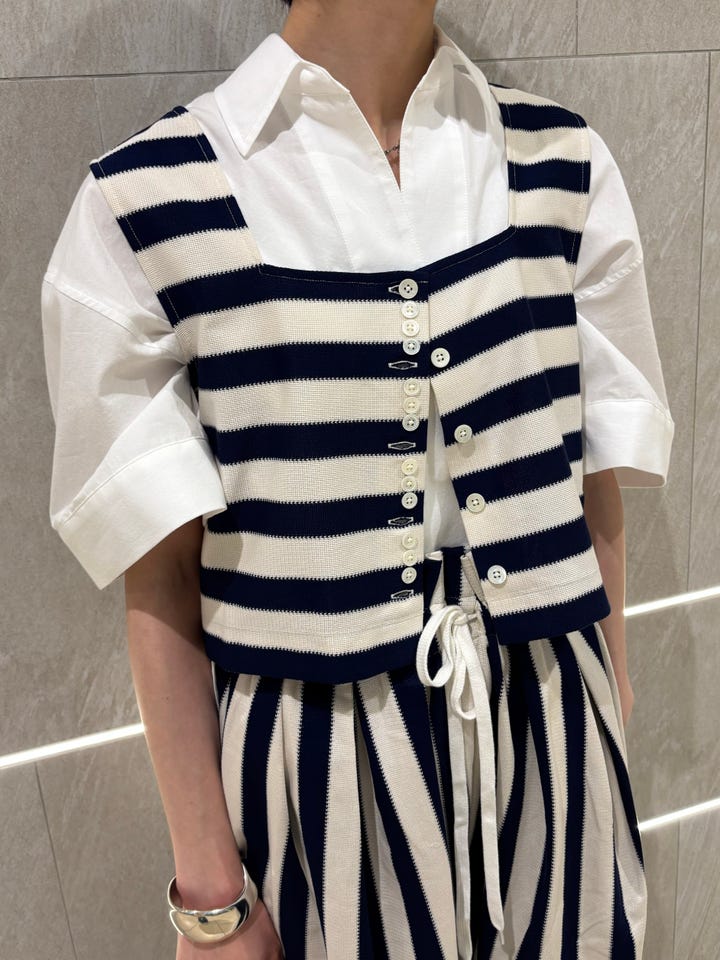 〔ONE SIZE〕〈手洗い可能〉無地/ストライプ スキッパー サイド スリット 半袖 シャツ