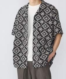 〔MEDIUM〕BENCH MARKING SHIRTS: エンブロイダリー オープンカラー シャツ