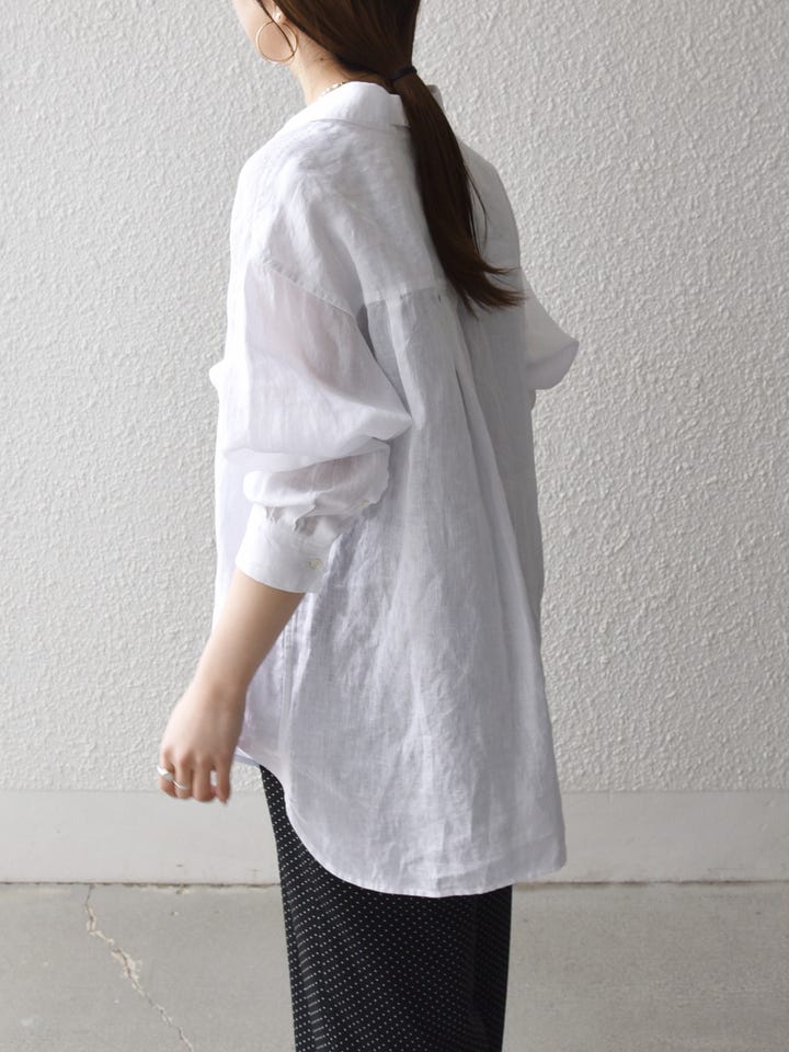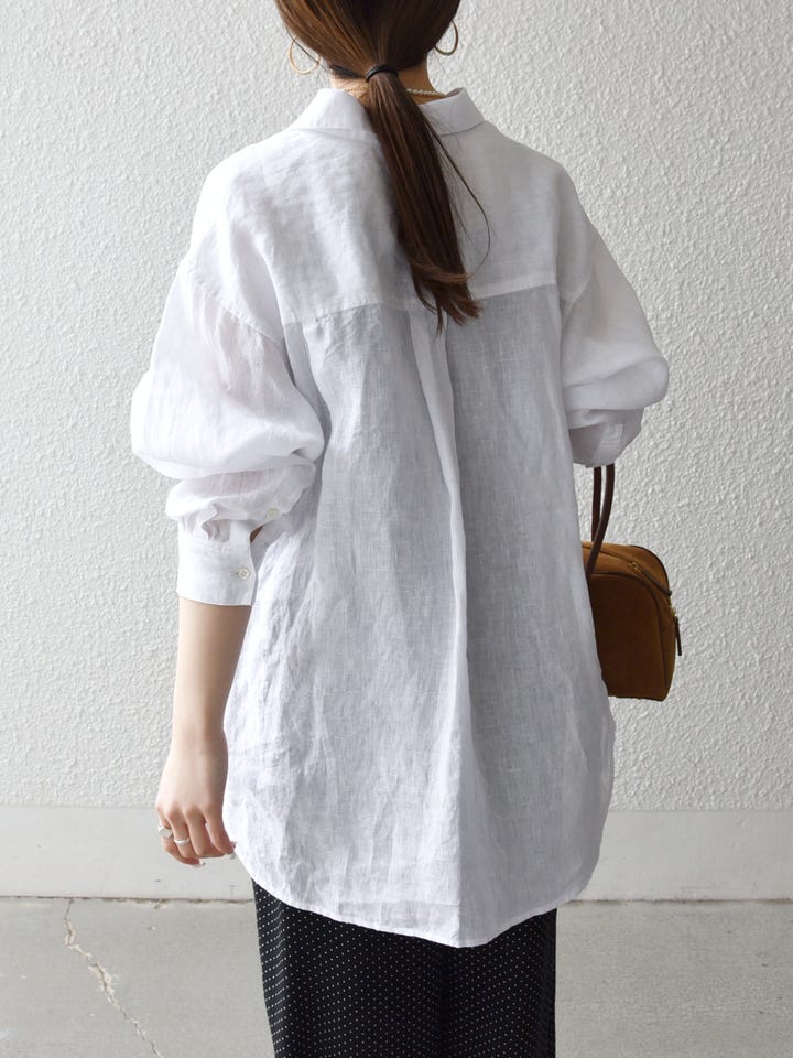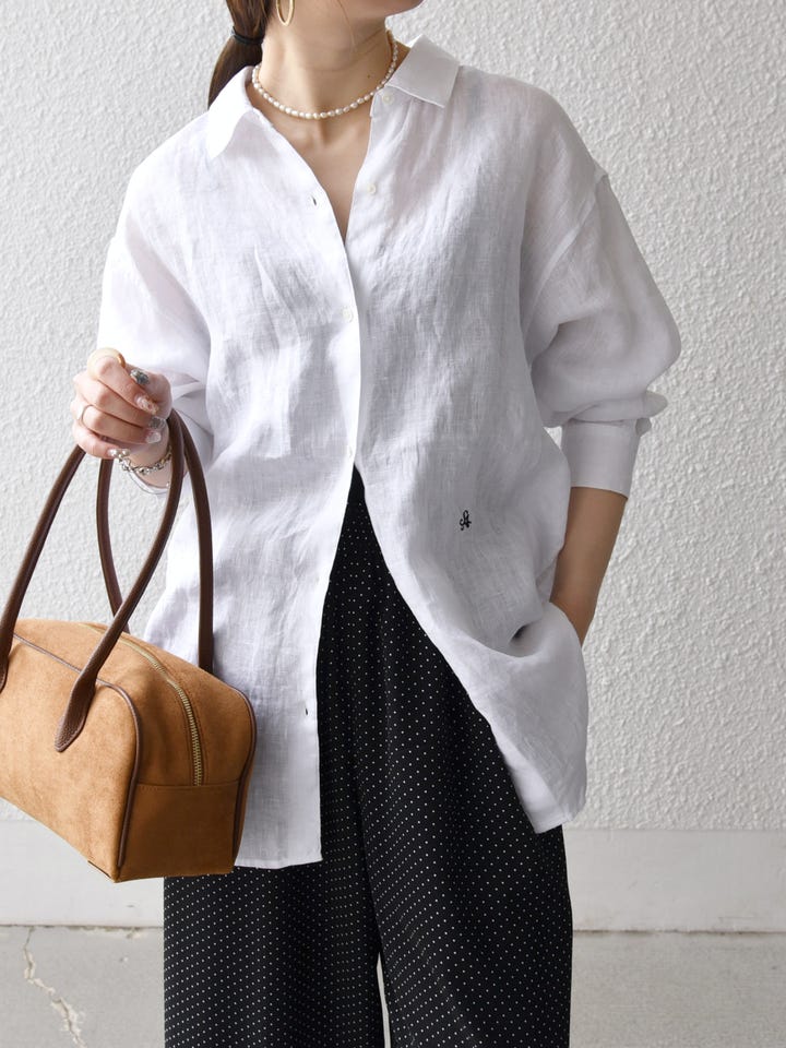 着用アイテム:SHIPS any:〈洗濯機可能〉リネン レギュラーカラー ルーズ 刺繍 シャツ