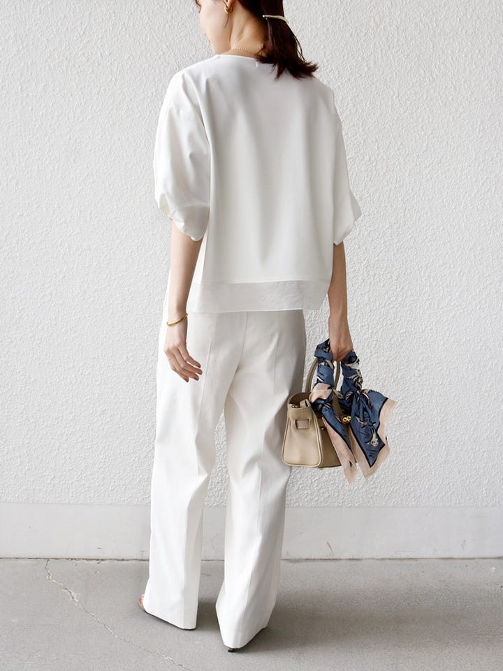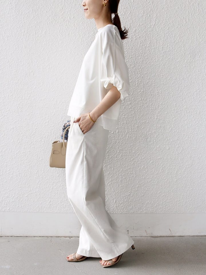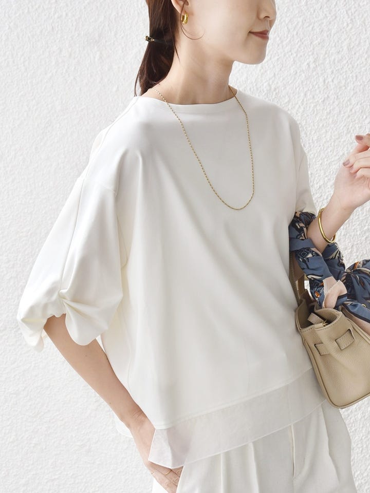 気軽に着れるTシャツながら、ブラウスライクできちんと見えも叶う1枚です◎