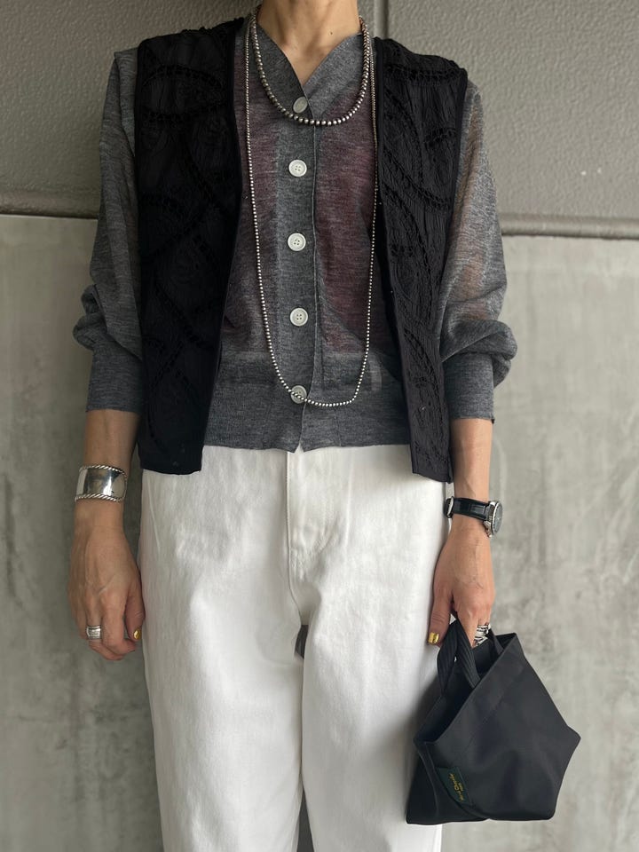 〔ONE SIZE〕《一部追加予約》〈手洗い可能〉麻混 シアー Vネック カーディガン