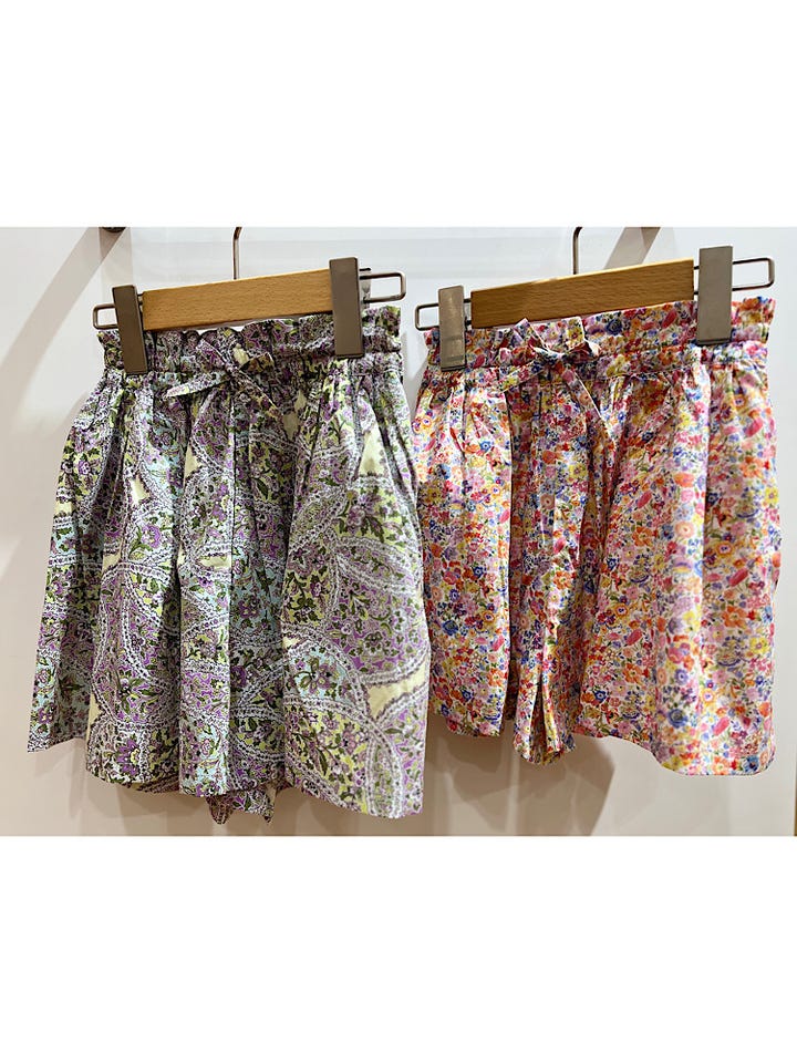 リバティ柄を使用したキュロットスカート。
