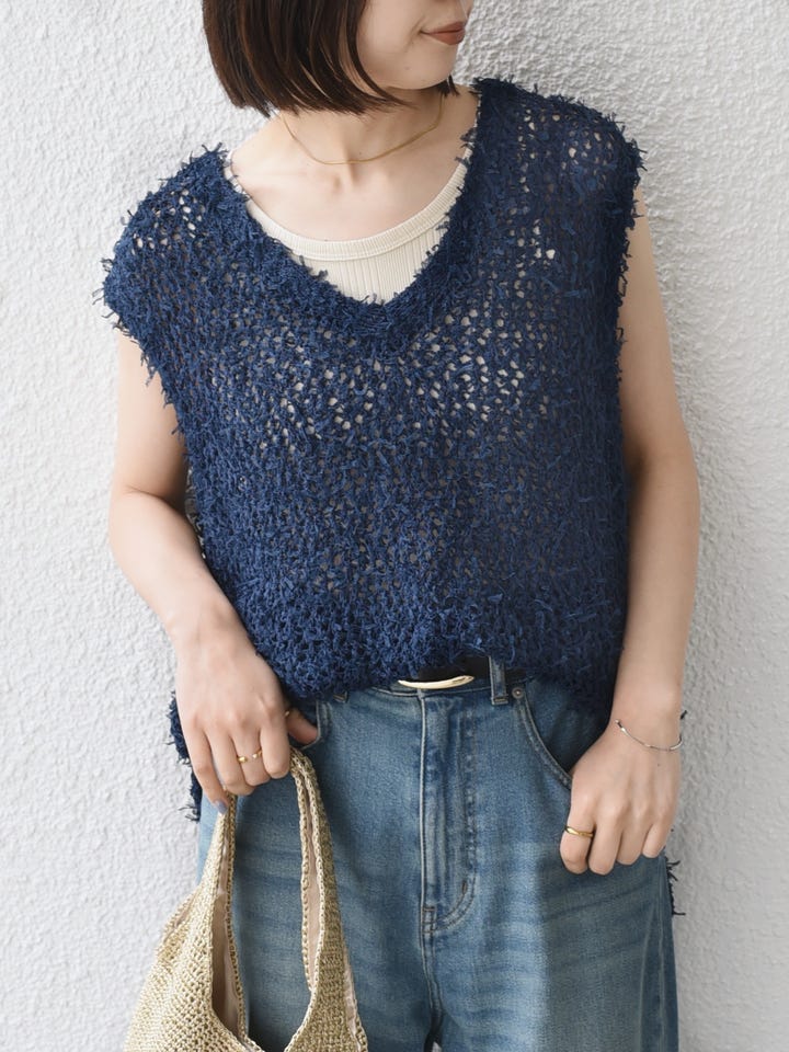 着用アイテム:〈手洗い可能〉チュールヤーン ミックス Vネック ベスト