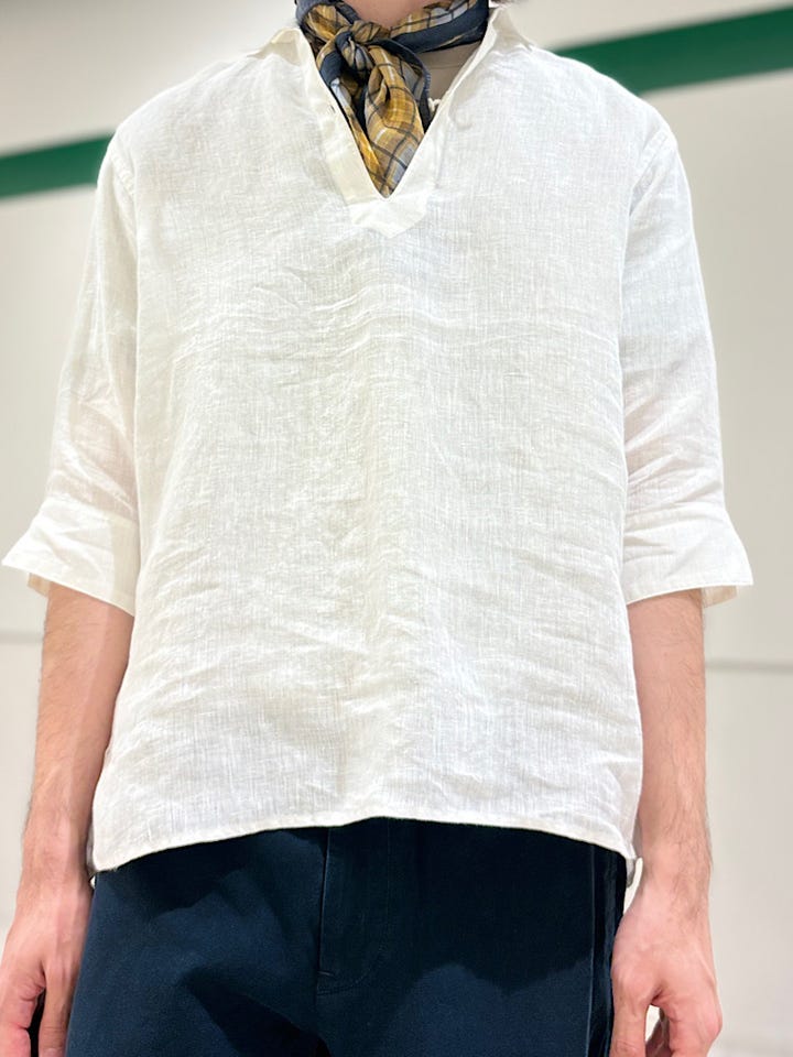 スキッパーなのでインナーで柄や差し色を入れたりできるのでコーディネートの幅が広がります!