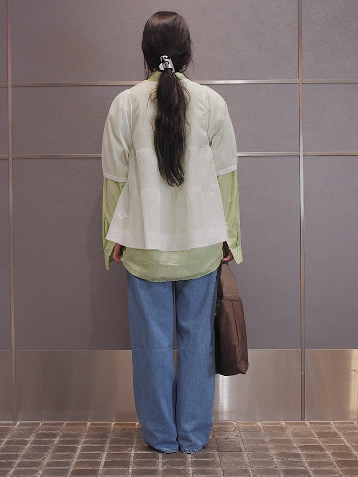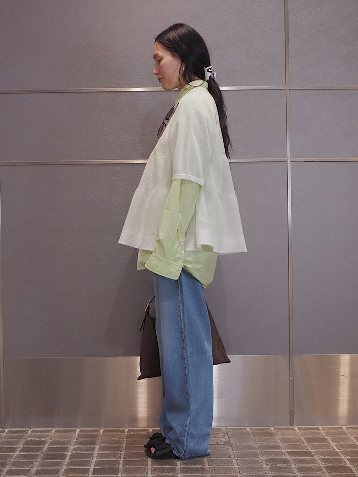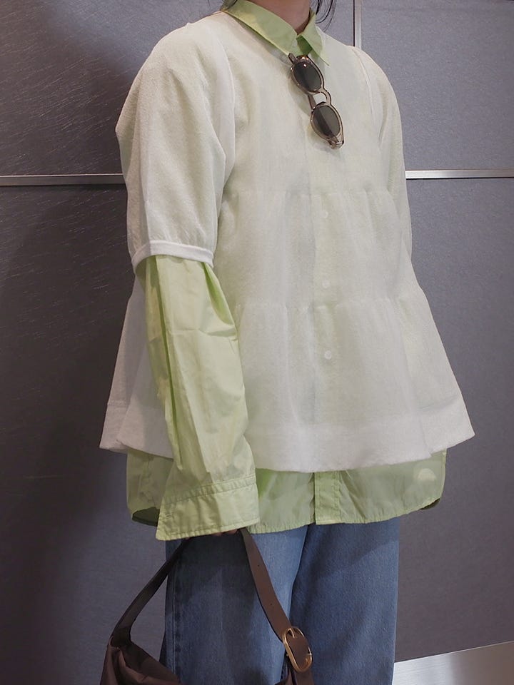 〔ONE SIZE〕〈手洗い可能〉麻混 シアー ティアード ショート スリーブ プルオーバー