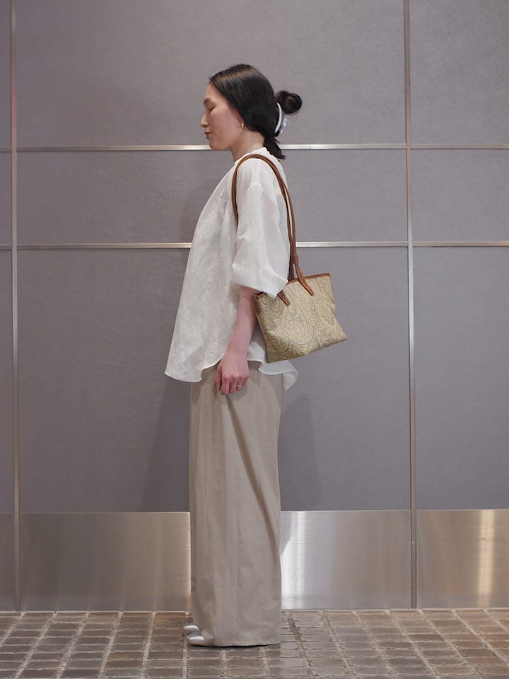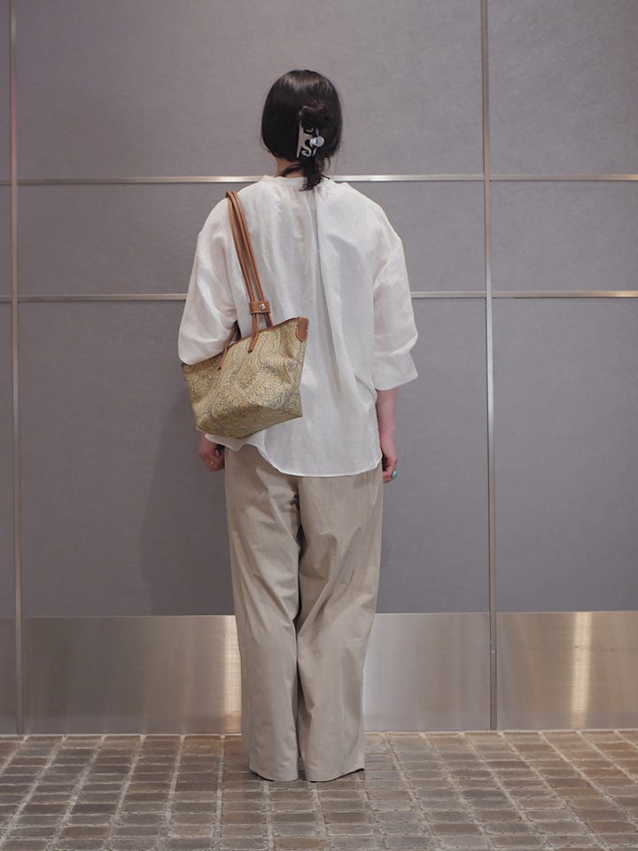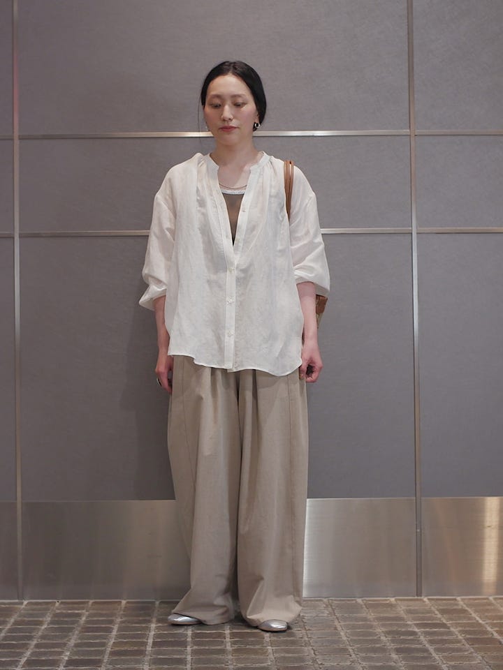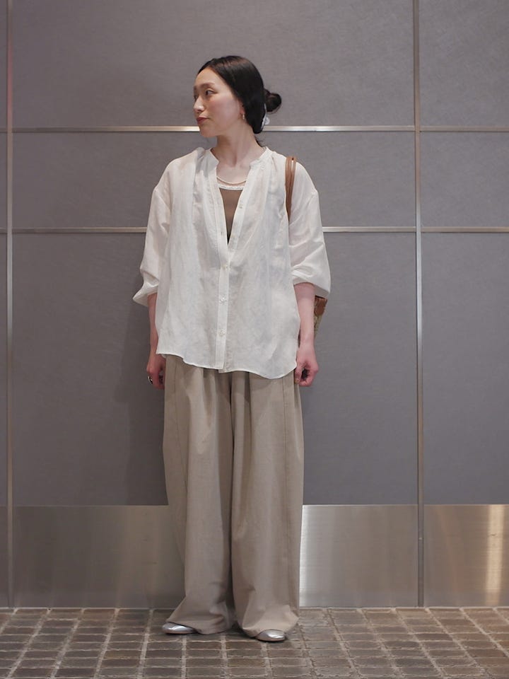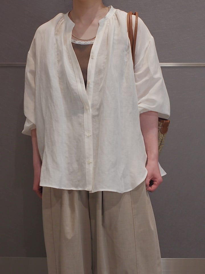 〔ONE SIZE〕《一部追加予約》〈手洗い可能〉IMPERIAL LINEN 混 バンドカラー スキッパー シャツ