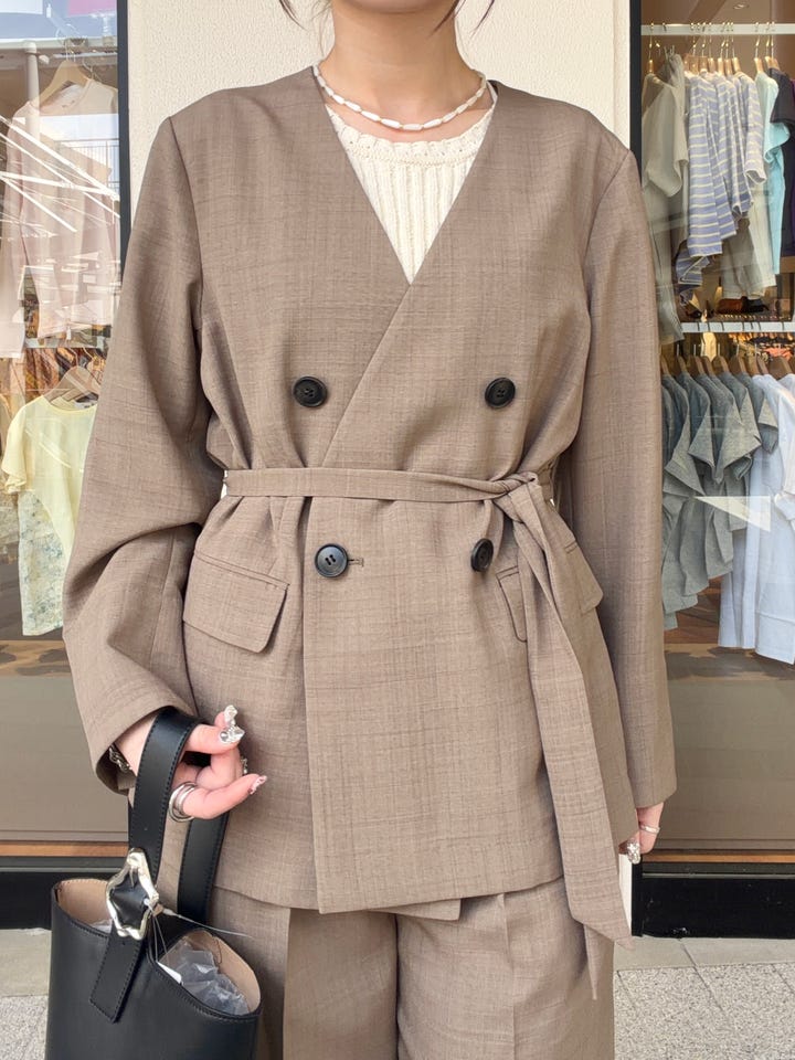 〔ONE SIZE〕SHIPS Colors:〈手洗い可能〉リネン ライク ベルテッド ジャケット◇