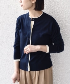 〔ONE SIZE〕SHIPS Colors:〈手洗い可能〉配色 ニット クルーネック カーディガン◇