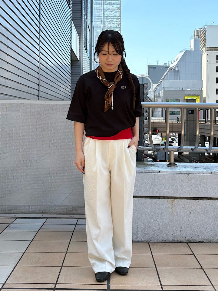 着心地 :ポリエステル100%で柔らかくベタつかない。さらっとした素材で春夏に万能な一枚。