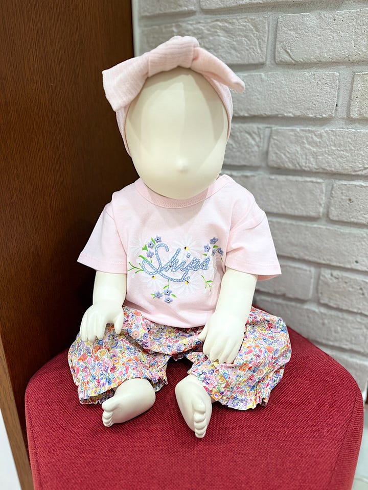刺繍でshipsと施されてお花柄プリントが可愛いTシャツと合わせていかがですか^ ^