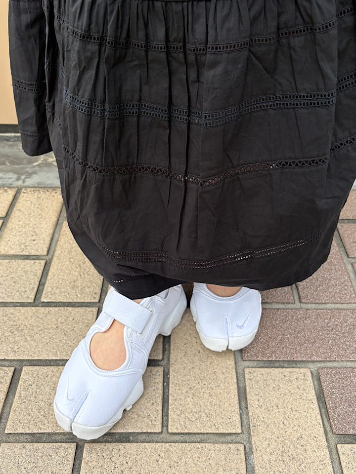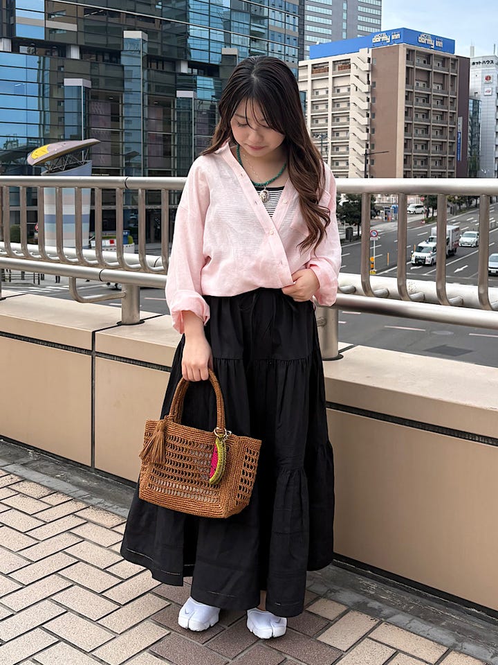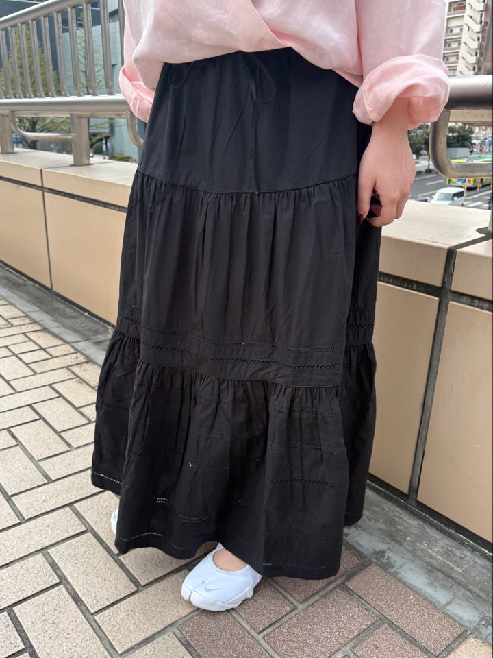 着心地 :あまりベタつかないさらっとした生地。甘すぎないティアードがポイントのスカート。