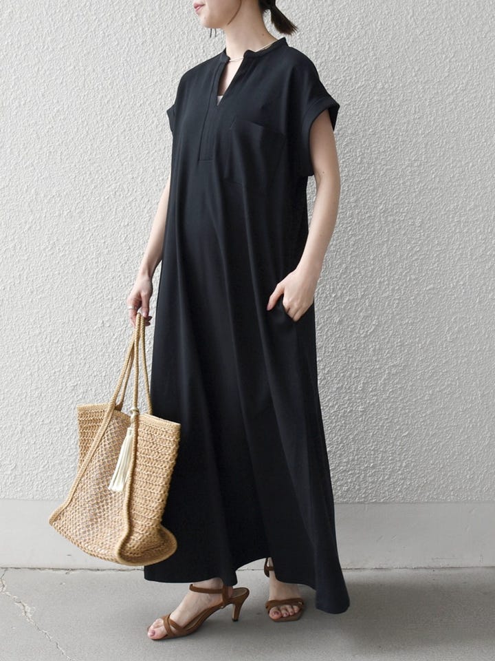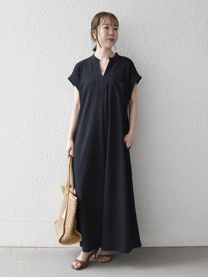 着用アイテム:SHIPS any:〈接触冷感/汗染み防止加工/洗濯機可能〉スキッパー Aライン ワンピース ブラック