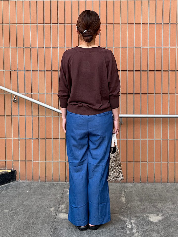 素材感・着心地: コンパクトなサイズ感ですが、身幅にゆとりがあるので、体のラインは拾いにくく、むしろスッキリ見せてくれます。