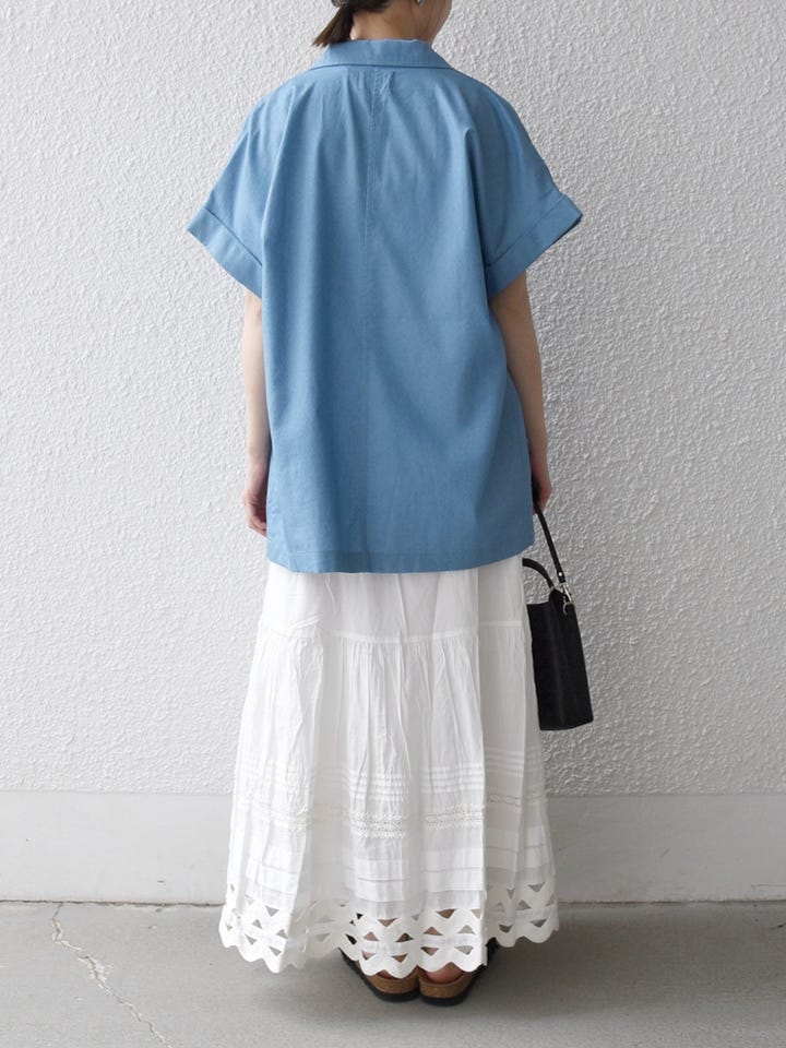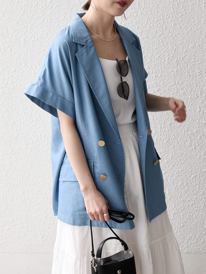 着用アイテム:SHIPS any:〈洗濯機可能〉シャンブレー デニム ロールアップ シャツ ジャケット ライトブルー