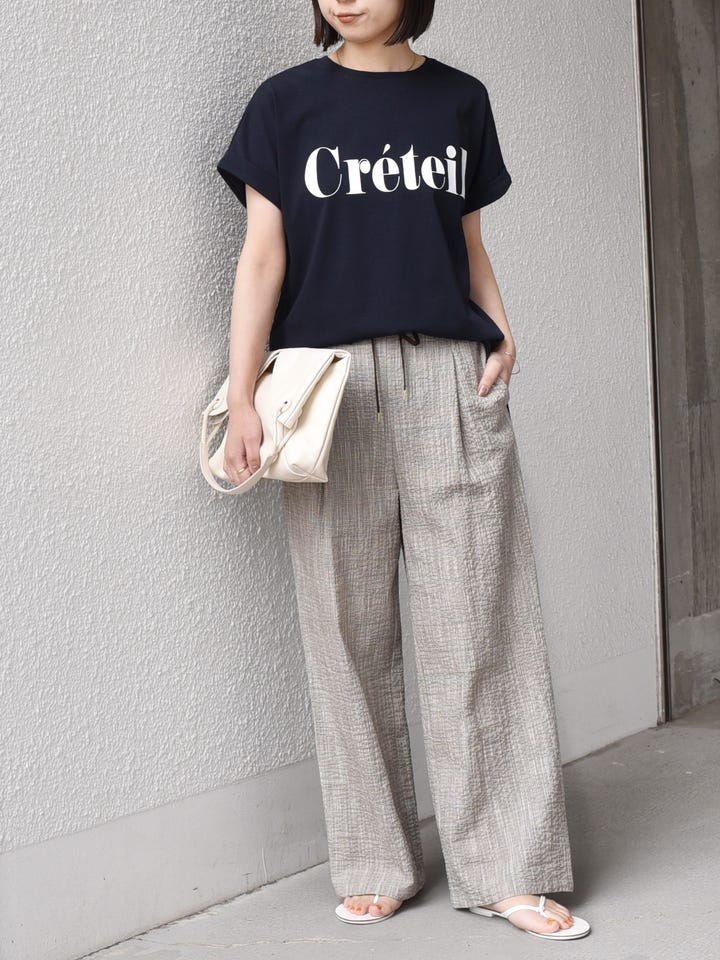 着心地:絞感のある生地で、涼しい着用感です◎ウエストもゴムなのでラクに履けます。
