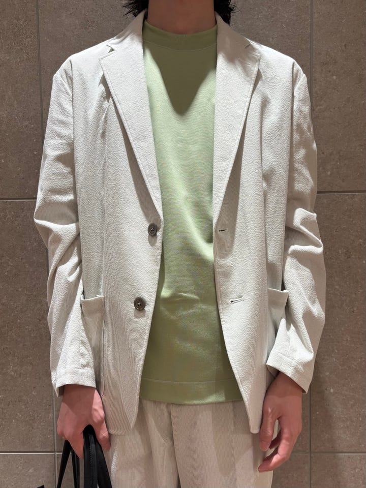 着心地 : 非常に軽量でさらっとした肌触り。春夏のビジネスカジュアルスタイルにおすすめです。